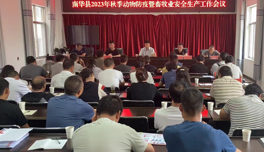 8月18日,南华县召开2023年秋季动物防疫暨畜牧业安全生产工作会议。各乡镇分管领导,农业农村服务中心主任及畜牧兽医人员;县农业农村局主要领导和分管领导,局畜牧兽医水产股、县动物疫病预防控制中心、县动物卫生监督所全体干部职工,县重大动物疫病防治指挥部办公室工作人员共60人参加会议。