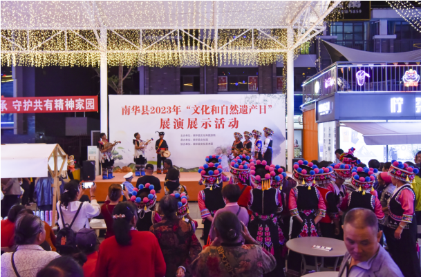 “文化和自然遗产日”是集中宣传展示文化和自然遗产保护成果的重要节日,为进一步动员全社会共同参与、关注和保护文化遗产,增强全社会的非物质文化遗产保护意识,传承弘扬中华优秀传统文化,营造传承保护非物质文化遗产的良好氛围,南华县文化和旅游局以“加强非遗系统性保护 促进可持续发展 ”为主题,于6月11日晚7:30,在县城幸福枫景街区举行南华县2023年“文化和自然遗产日”展演展示活动。