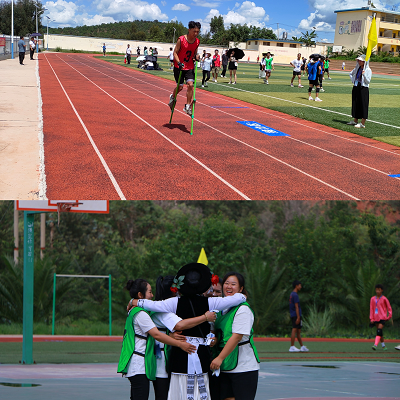 然后,在雨露中学跑道上举行盛大的“南华·石榴红杯”高脚竞速比赛”。本次高脚竞速赛邀请了省内外高脚竞速代表队9支参赛(省外2支,州外5支,州内2支),项目设置为男子团体4×100米接力、女子团体4×100米接力。比赛分两个阶段进行,第一阶段为淘汰赛阶段,采用抽签的方式,确定对决对手,每两个队为一组进行比拼,以比赛用时时间决出9支参赛队的排名,排名成绩确定6支代表队进入决赛;第二阶段为决赛阶段,同样采用抽签的方式,确定对决对手,每两个队为一组进行比拼,以比赛用时时间决出6支进入决赛阶段代表队的排名,以本队4名参赛运动员比赛用时时间计算排名。在比赛过程中,参赛队员们团结一致,赛出风采,拉近了彼此之间的距离。高脚竞速比赛促进了各民族相知相亲相惜、交往交流交融,进一步铸牢了中华民族共同体意识,使各族群众人心归聚、精神相依。
