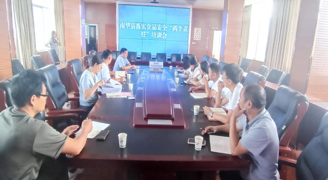 南华县市场监督管理局围绕“一年全覆盖、两年见实效、三年上台阶”总体目标,2023年9月7日,组织十乡镇食安办负责人在局五楼会议室召开南华县落实食品安全“两个责任”培训会。
