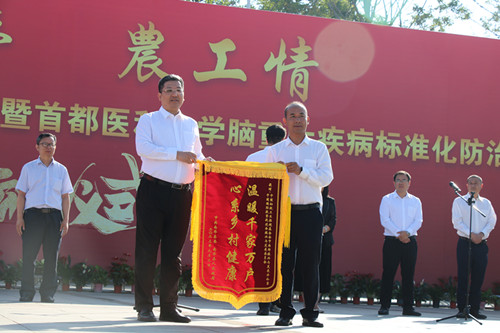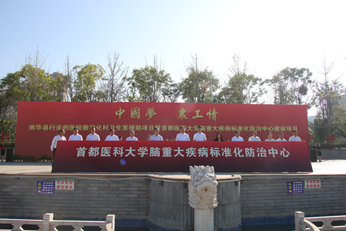 参加启动仪式农工党嘉宾和省级县级领导为首都医科大学脑重大疾病标准化防治中心揭牌。楚雄州政协副主席、农工党楚雄州委主委曹波宣布南华县“大病不出县 行走的医院”数字化村卫生室援助项目和首都医科大学脑重大疾病标准化防治中心建设项目正式启动。