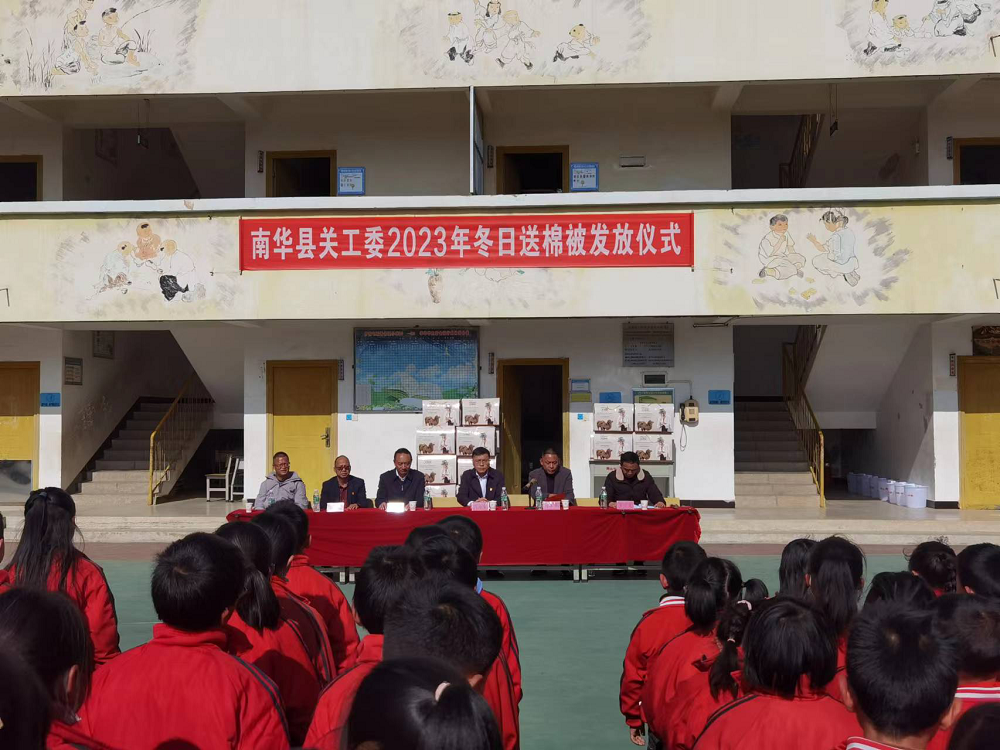 11月20日,南华县委关心下一代工作委员会在龙川镇罗家屯小学开展主题为“寒冬送棉被,真情暖人心”的2023年冬日棉被发放活动。