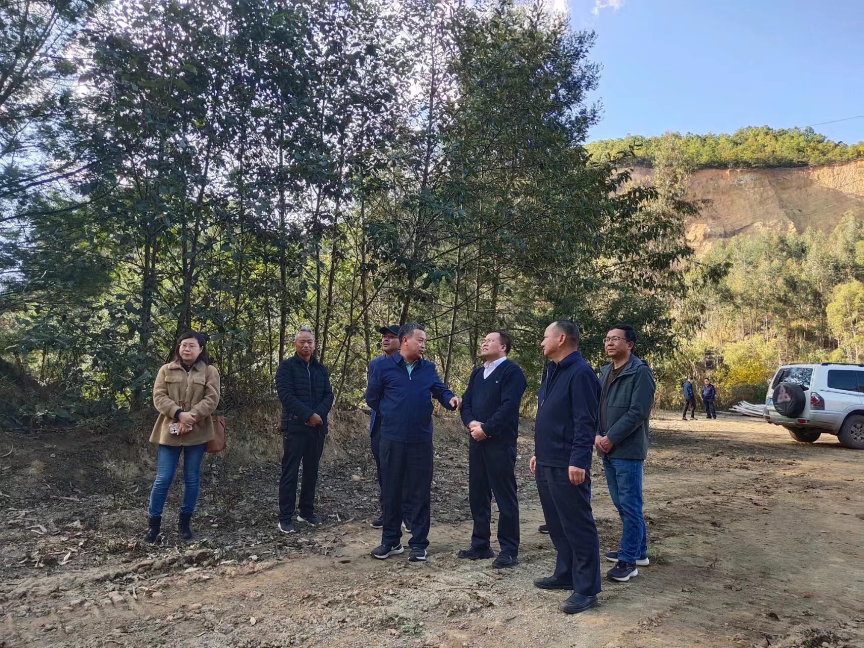 2023年11月23日,国家林业和草原局驻云南专员办监管处处长洪加晴一行深入南华督导2023年森林督查、打击毁林毁草专项行动工作开展情况。在州林草局局长陈福、党委副书记李光平、县林草局局长阳加荣陪同下,洪处长一行深入干汉场石场、吕合煤矿排土场光伏电站、姚南高速公路等图斑点位实地调研督导。
