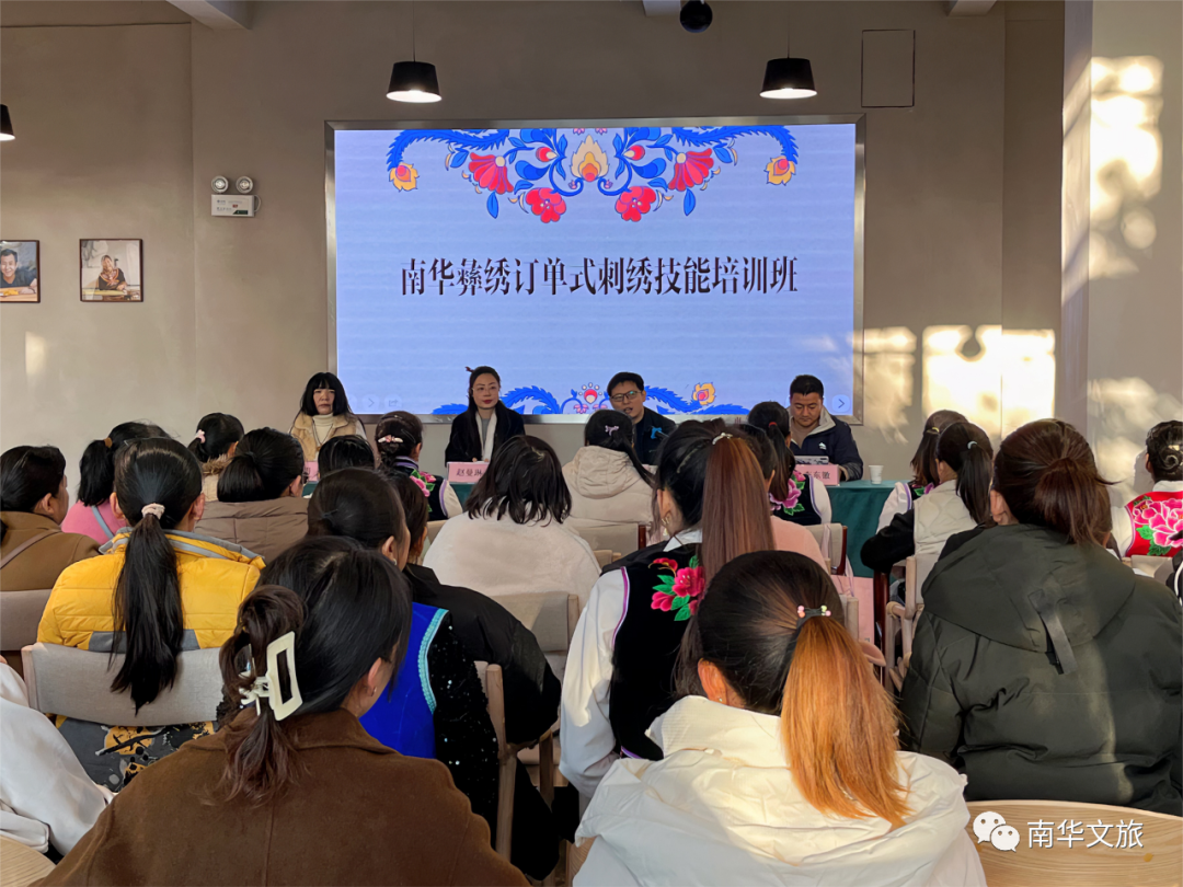 为加快南华民族刺绣产业发展,进一步提升刺绣从业者加工技能水平,2023年11月29日上午,由南华县文化和旅游局主办,南华彝绣订单式刺绣技能培训班在至善彝绣馆B馆一楼开班,县人民政府副县长李骏扬出席开班仪式并讲话。