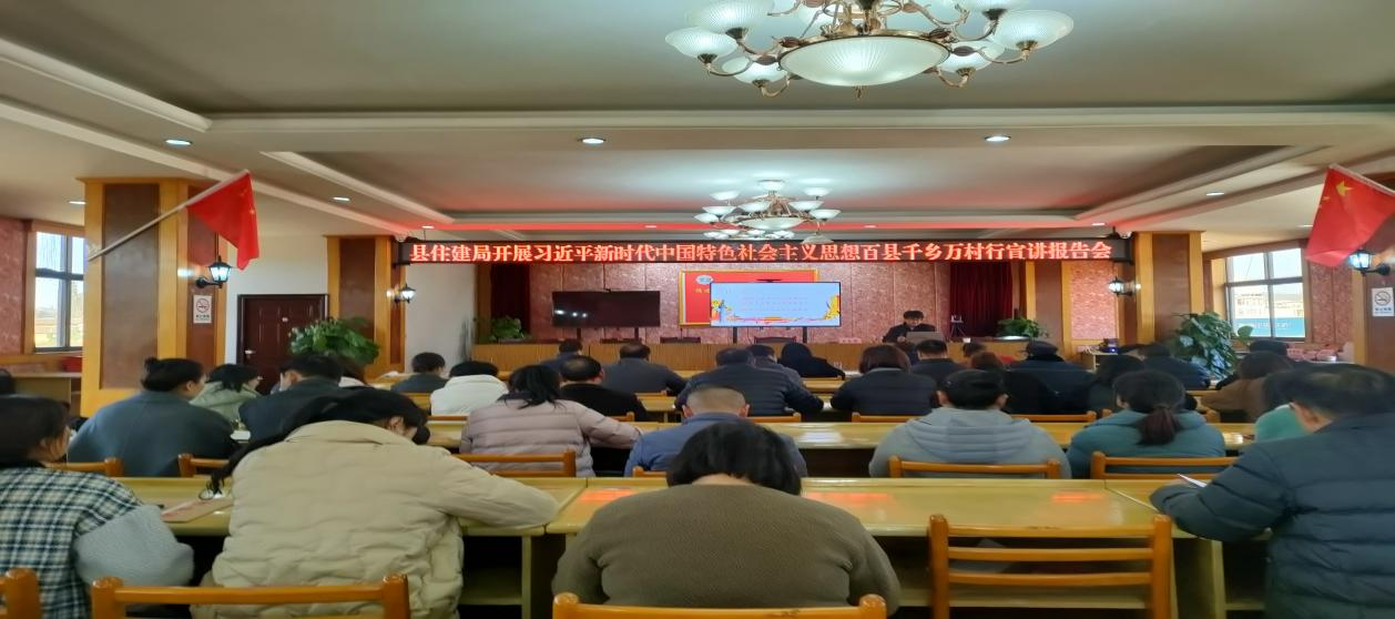 2023年12月11日上午,县住建局举行“习近平新时代中国特色社会主义思想百县千乡万村行”宣讲报告会,局班子成员、干部职工、全体党员参加报告会。