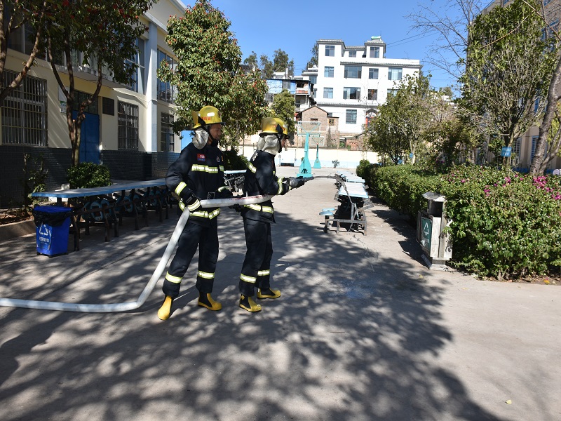 为做好辖区社会单位灭火救援基础工作,不断提升队伍灭火救援实力,迅速有效扑救各类火灾事故。近日,南华县消防救援大队深入辖区南华县龙川镇龙川中学、好声音娱乐会所等开展灭火实战演练。