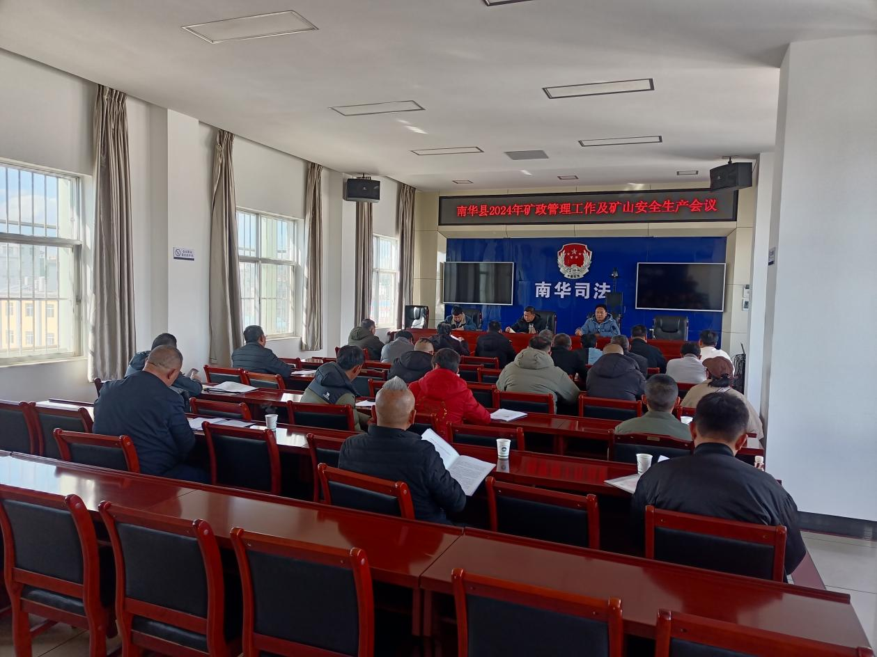 近日,南华县召开2024年全县矿山企业安全生产暨矿政管理工作会议,安排部署2024年安全生产工作及矿政管理工作,会议由自然资源局党组成员、副局长彭有文同志主持,全县24家矿山企业负责人及自然资源局各相关股室负责人参加会议。