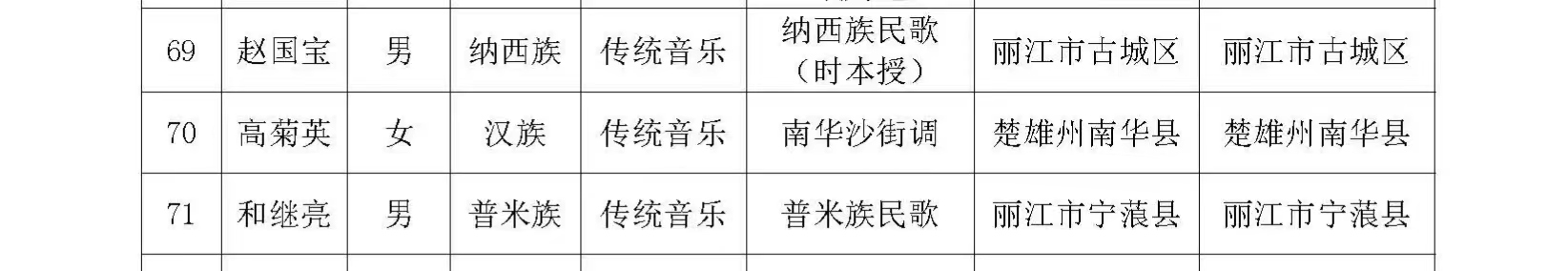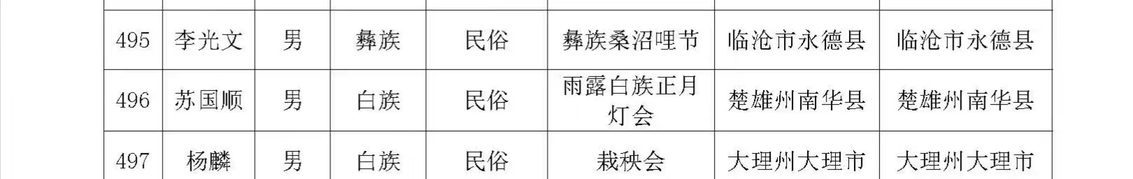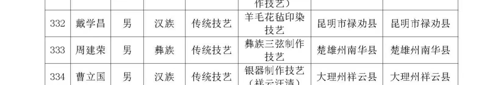 近日,云南省文化和旅游厅发布《云南省文化和旅游厅办公室关于开展第七批省级非物质文化遗产代表性传承人推荐申报工作的通知》(云文旅办发〔2023〕68号),南华县共有6名传承人入选,分别是南华沙街调传承人高菊英、彝族三弦舞传承人李正华、根雕(楚雄)技艺传承人刘龙兴、火草纺织技艺传承人罗翠英、彝族三弦制作技艺传承人周建荣、雨露白族正月灯会传承人苏国顺。