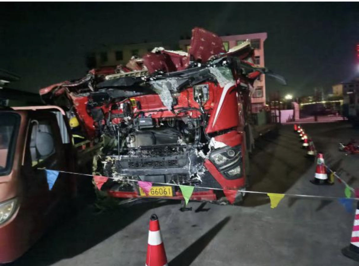 ——临危受命,争分夺秒赴“战场”。南华县腾龙物流有限公司危险品应急救援大队在事故发生当天18:54接到楚雄州交通运输综合行政执法支队南华大队的救援任务后,立即与楚雄州交通运输综合行政执法支队牟定大队联系,了解基本情况。该公司总经理(兼应急救援大队大队长)立即启动应急预案,安排4名专业救援队员并亲自带队赶赴现场救援,到达事故现场后对事故现场进行勘察,发现天然气罐体左侧因事故受损导致天然气泄漏,有发生气体爆燃的风险,情况十分危急。对此,救援人员立刻对现场进行仔细勘察并立即制定现场救援方案,将情况和救援方案汇报给现场领导,并请示清理现场无关人员和附近居民楼的居民,封锁事故现场。