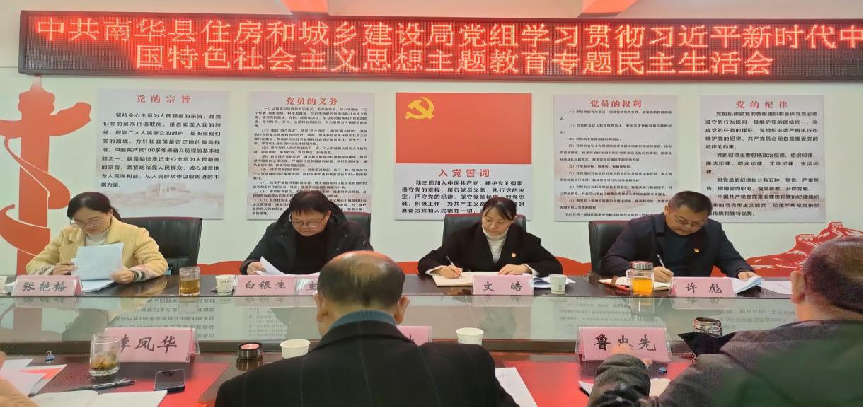 根据党中央统一部署和省、州、县党委要求,1月17日,南华县住建局党组召开领导班子学习贯彻习近平新时代中国特色社会主义思想主题教育专题民主生活会,聚焦“学思想、强党性、重实践、建新功”总要求,深入学习领悟以学铸魂、以学增智、以学正风、以学促干的丰富内涵和实践要求,对照凝心铸魂筑牢根本、锤炼品格强化忠诚、实干担当促进发展、践行宗旨为民造福、廉洁奉公树立新风目标要求,深入检视问题,深刻剖析问题根源,开展批评与自我批评,明确整改措施,进一步统一思想、统一意志、统一行动,坚定拥护“两个确立”、坚决做到“两个维护”,为推动南华县住建工作高质量发展提供坚强的组织保障。县人民政府分管领导、县委第五指导组领导到会指导。