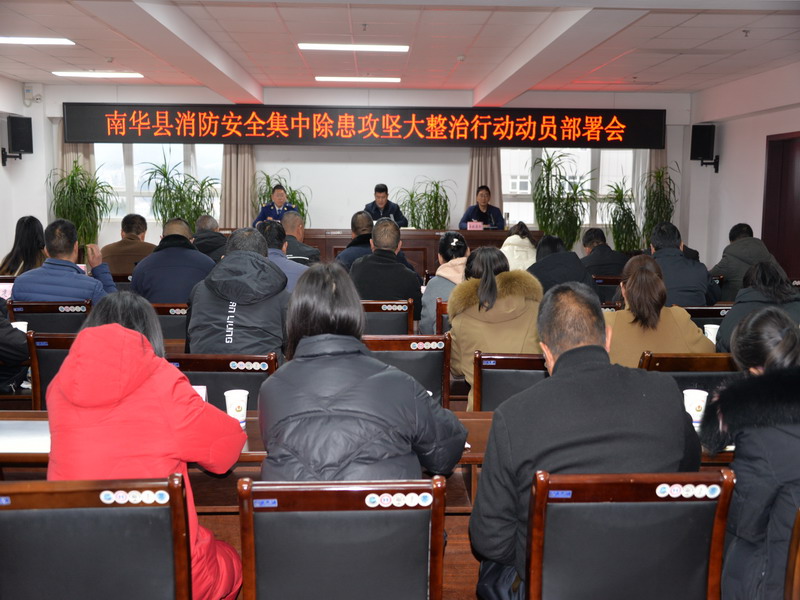 2 月2日,南华县人民政府组织召开消防安全集中除患攻坚大整治动员部署会,县委常委、常务副县长毛焕朝出席会议并讲话。县消安委成员单位及乡镇政府主要负责同志参加会议。