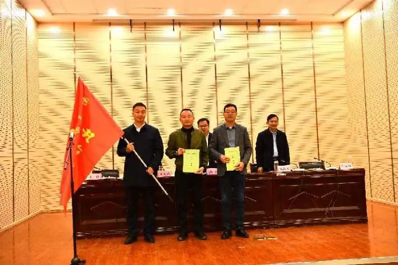 县委书记马特,县委副书记、县长陈如军现场为6个招商工作组授出征旗、发放任务书,各组组长分别作表态发言。