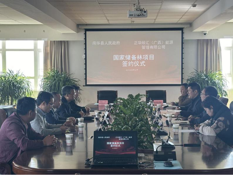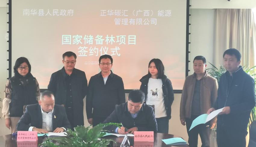 2月26日上午,南华县国家储备林基地建设项目签约仪式在公务中心七楼702会议室举行。南华县人民政府与8家项目联合体单位(中国林业与环境促进会碳中和专业委员会、中信环境投资集团有限公司、中国医药集团、国合新力(北京)基金管理有限公司、国林产融集团公司、中国建筑第四工程局、中国水利水电第十六工程局、正华碳汇(广西)能源管理有限公司)执行单位正华碳汇(广西)能源管理有限公司签订了《南华县国家储备林基地建设合作协议》,开启我县推进国家储备林建设的“第一单”,标志着南华县林草生态建设迈出了突破性、关键性的“第一步”。签约仪式由县林草局局长阳加荣主持,县委常委、县人民政府常务副县长毛焕朝参加签约仪式并对项目合作及推进作出要求讲话,县发改局、县财政局、县投资促进局主要领导列席此次签约仪式。