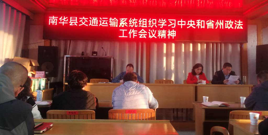2月26日上午,南华县交通运输局组织局机关、县农村公路管理所、地方公路管理段、楚雄州交通运输综合行政执法支队南华大队干部职工和楚交集团南华分公司中层以上干部共50余人集中学习2024年中央和省州政法工作会议精神。