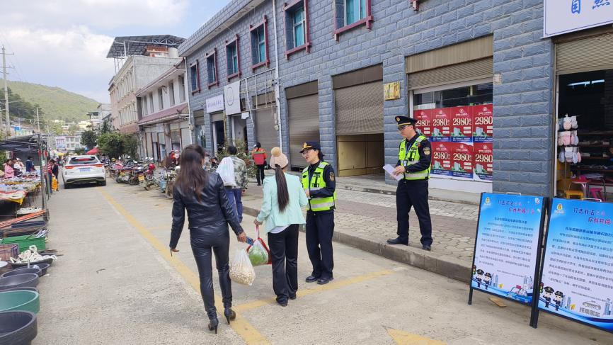 南华大队利用赶集日人员密集这一特点,在乡镇集市上摆放宣传展板并向路过群众发放宣传材料,向群众宣传乘坐非法营运车辆的危害、如何识别合法合规车辆等,提高群众的安全意识、法律意识。同时在乡镇安全路段对过往车辆进行检查,向司机乘客发放宣传材料,签订打击非法营运专项行动工作告知书。