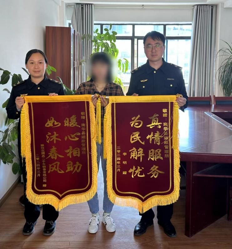 2024年3月11日,来自四川的攀枝花腾鼎二手车销售有限公司负责人李先生委托其朋友为楚雄州交通运输综合行政执法支队南华大队送来2面印有“真情服务,为民解忧”“暖心相助,如沐春风”的锦旗,对州交通执法支队南华大队表示感谢!