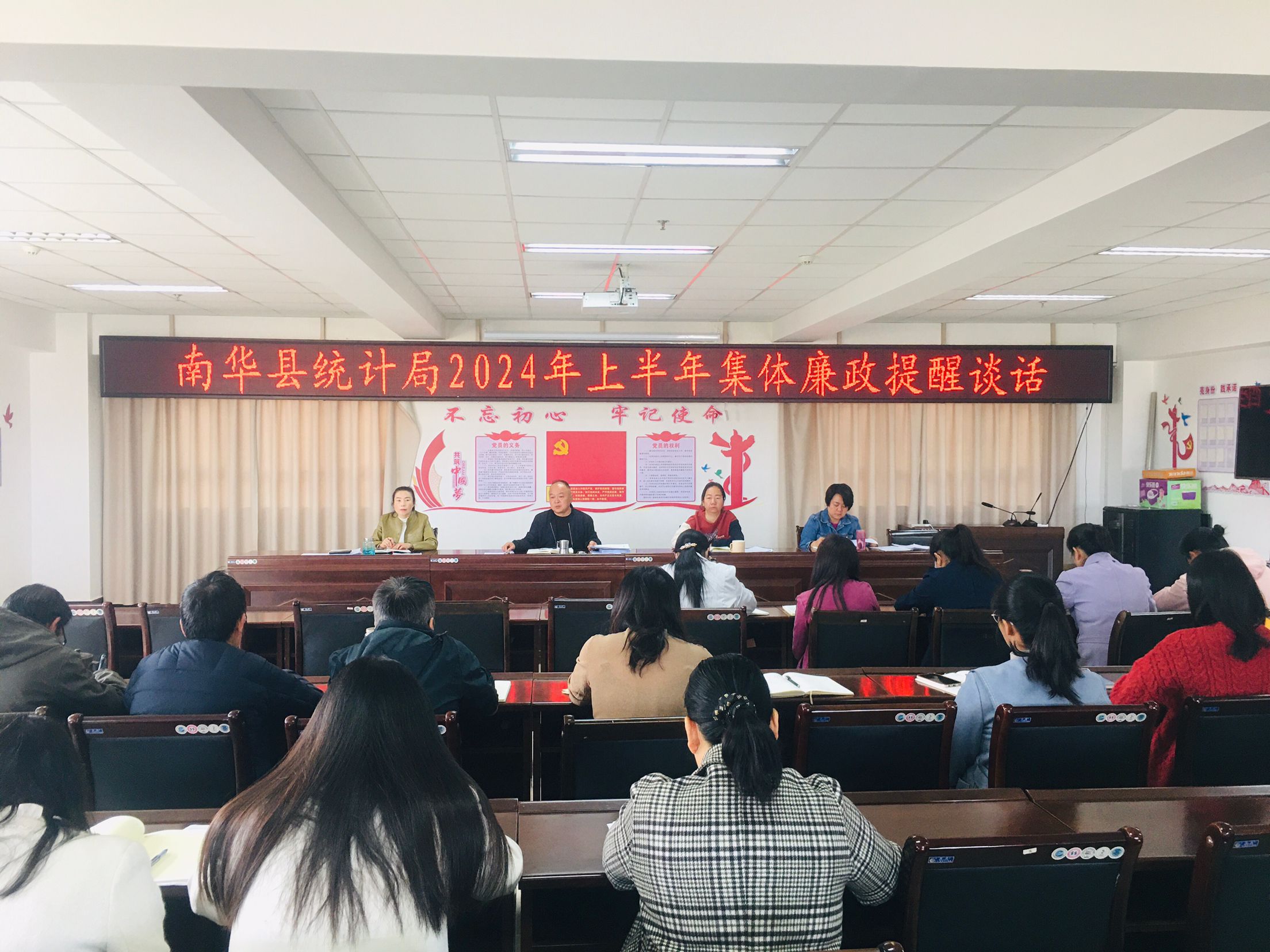 为进一步落实全面从严治党要求,加强对党员干部职工的教育、管理和监督,提高任职干部廉洁从政意识,筑牢拒腐防变思想防线,3月18日,南华县统计局召开2024年上半年集体廉政提醒谈话会议,对全体党员干部职工进行集体廉政提醒谈话。谈话会议由局党组书记、局长戴必新主持。