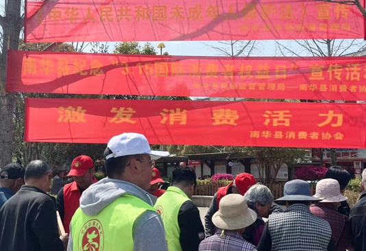 为进一步营造良好的消费环境,提高广大消费者的权益保护及食品安全防范意识,激发市场消费活力、提升群众消费观念,3月15日,南华县开展了由消费者协会成员单位联合举办的以“激发消费活力”为主题的“3·15”国际消费者权益日宣传咨询服务活动,努力为消费者创造更放心、更安心、更公平的消费环境。