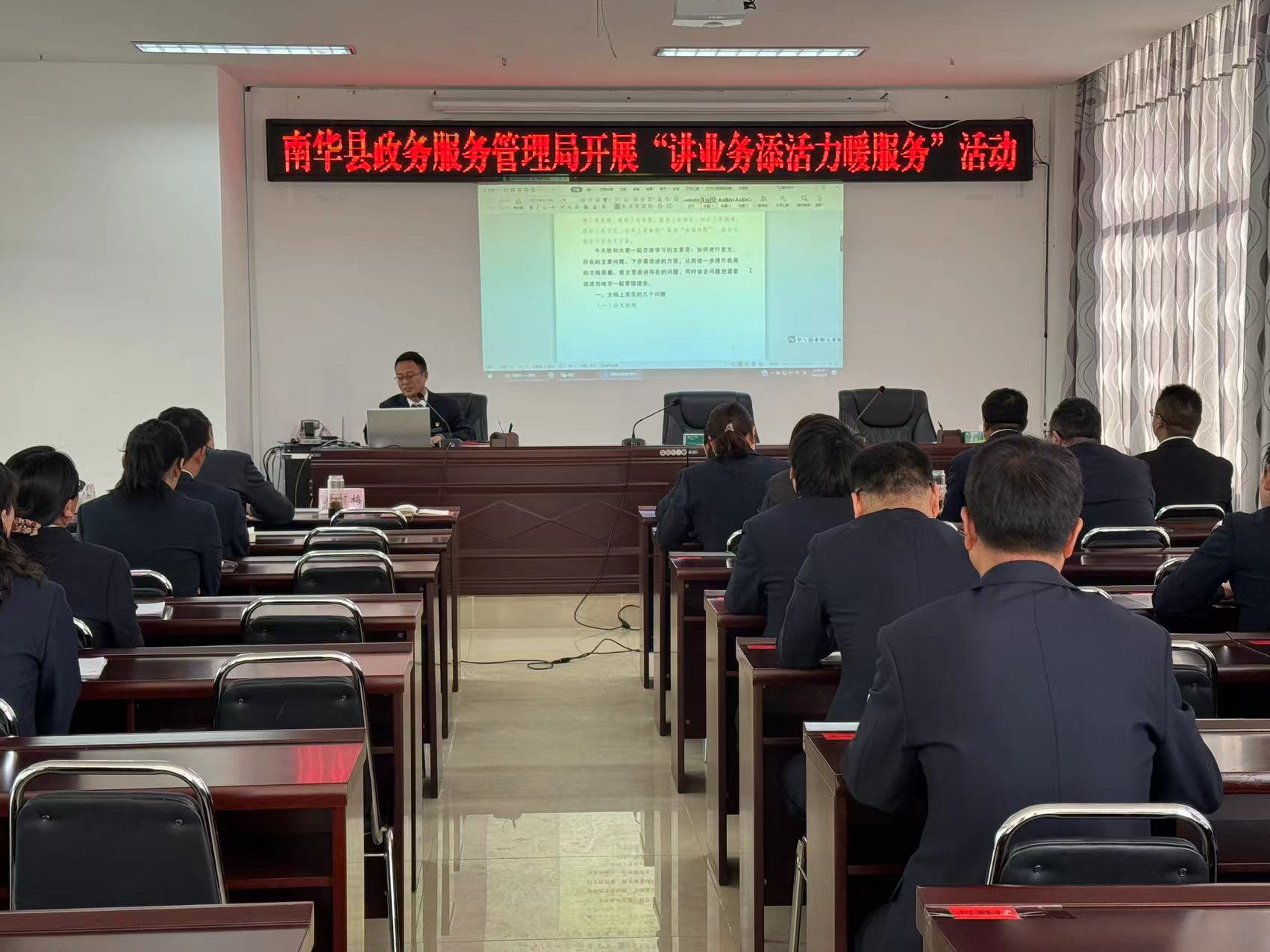 为持续将作风革命效能革命走深走实,南华县政务服务局开展“讲业务添活力暖服务”活动,用“以讲促学、以学促干”方法,引导政务服务干部立足岗位职责,互通政务服务业务,提高履职能力和服务水平。