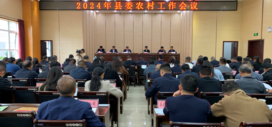 县委书记马特出席会议并讲话,他充分肯定了过去一年“三农”工作取得的成绩,他指出:2023年,全县“三农”工作有进步、有成效,13项“三农”领域工作经验做法在全国全省全州交流推广、宣传报道,5项重点农村经济指标迈入全州前列。实现第一产业增加值31.9亿元,对全县经济增长贡献率为24%,拉动GDP增长1.08个百分点。州对县(市)乡村振兴实绩考评为“好”等次,州对县巩固拓展脱贫攻坚成果同乡村振兴有效衔接考核连续6年为“好”等次,这是大家拼搏奋进的结果。同时也要看到全县农业“散小弱”问题还比较突出,农村基础设施欠账较多,脱贫人口持续增收压力大,基层治理任务还很繁重等短板问题。对今年的工作他强调:要聚焦“农民群众再富一点、农业产业再强一点、农村环境再好一点”,以实干实绩推动“三农”工作取得新突破、新成效。要突出“两个确保”,稳住“三农”工作基本盘;要围绕“三个提升”,建设宜居宜业和美乡村;要聚焦“两个强化”,增强农业农村发展的动力活力;要落实县乡村三级书记抓乡村振兴的政治责任,设身处地办好农民的事情,要进一步提高农业产业组织化水平;要抓实当前“三农”领域的5项重点工作,攻坚克难、苦干实干,全力补齐“三农”领域突出短板,全面推进乡村振兴,加快农业农村现代化,以优异成绩献礼中华人民共和国成立75周年!