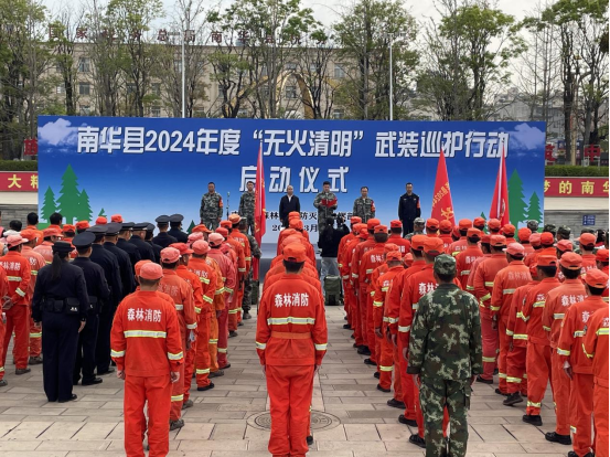 “清明节”“五一”即将来临,全县森林火险居高不下,为倡导广大人民群众文明祭祀、文明祭祖,严厉打击野外违规用火等违法犯罪活动,3月27日,南华县在龙泉广场举行2024年“无火清明”武装巡护行动启动仪式。