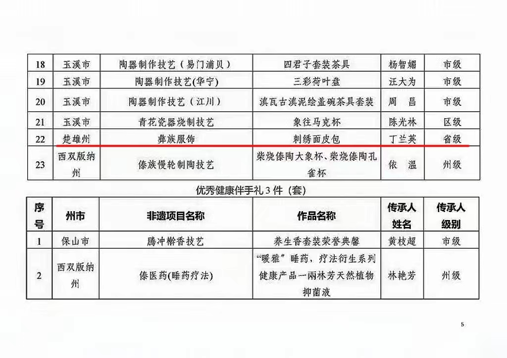 我县省级非物质文化遗产传承人丁兰英的作品刺绣面皮包拟入选“优秀日用伴手礼”名单;刺绣面布包、刺绣面杯套拟入选“日用伴手礼”名单。