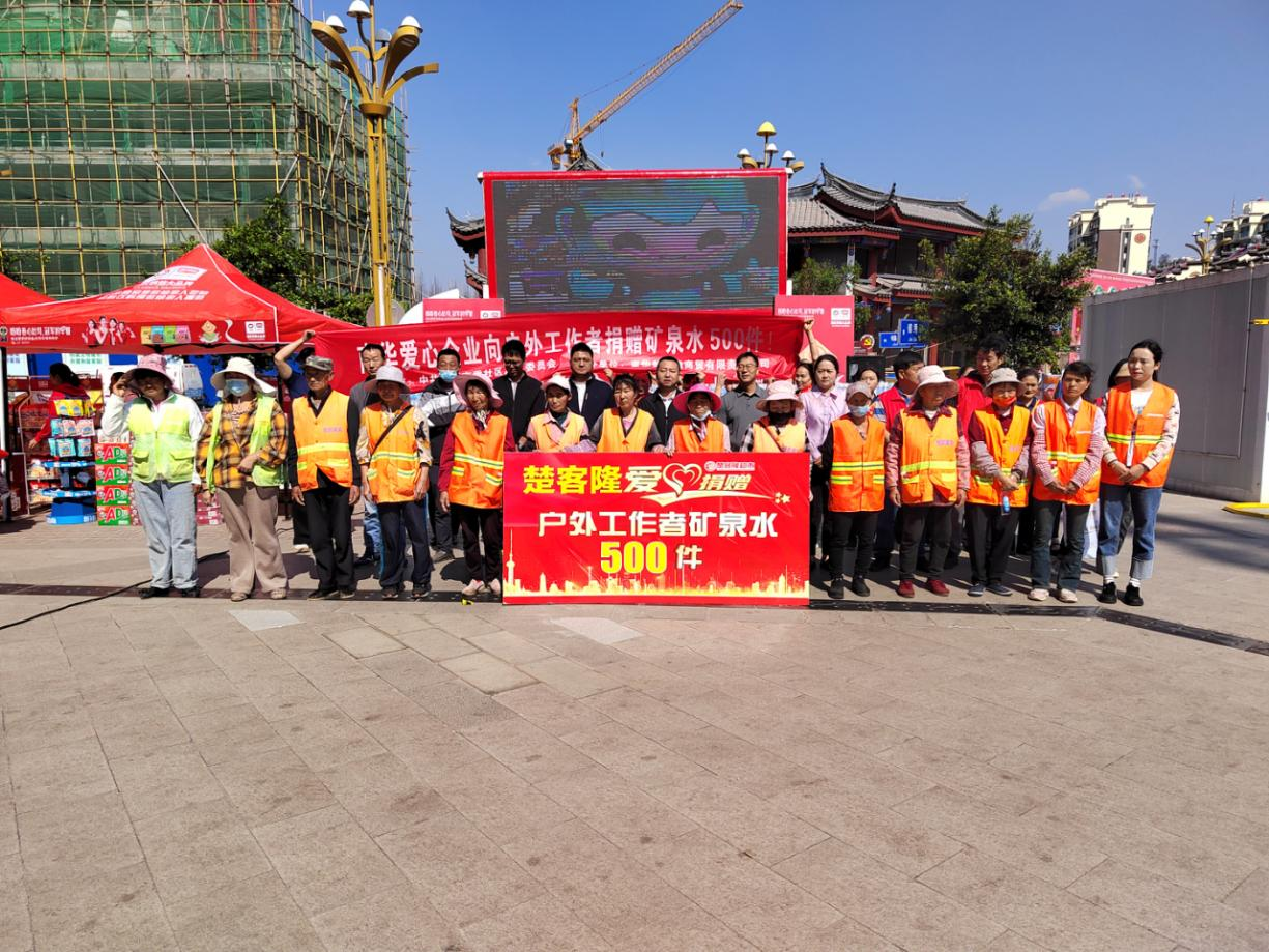 近日,连续的高温大风天气给环卫工人的工作带来了极大的困难和挑战。为进一步关心这些默默奉献的一线环卫工人,2024年4月26日,南华县龙川镇南秀社区联合楚客隆超市组织慰问活动,向一线环卫工人等户外劳动者捐赠500件饮用矿泉水,向他们致以最诚挚的慰问和祝福。这些矿泉水提供的是清凉,传递的是善心,让每一位一线环卫工人感受到社会对他们的关爱,感受到他们的辛勤付出没有被遗忘和忽视。一线环卫工人纷纷表示,非常感谢爱心企业对他们的关心和支持,他们一定会将这份爱心善举转化为实实在在的工作动力。在此,我们呼吁广大市民自觉爱护城市环境,少丢一份垃圾,多给他们一些关爱,多给他们一个微笑,让我们共同为建设活力南华、温暖南华、魅力南华、幸福南华增光添彩。