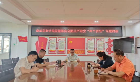 为认真贯彻落实党中央和省、州、县党委关于全面从严治党的部署要求,充分发挥全面从严治党引领保障作用,深入推进“清廉南华”建设行动以及“一把手”和领导班子监督“引领行动”的工作要求,持续推动全面从严治党“两个责任”落实落细。4月29日,南华县审计局党组开展全面从严治党“两个责任”专题约谈。