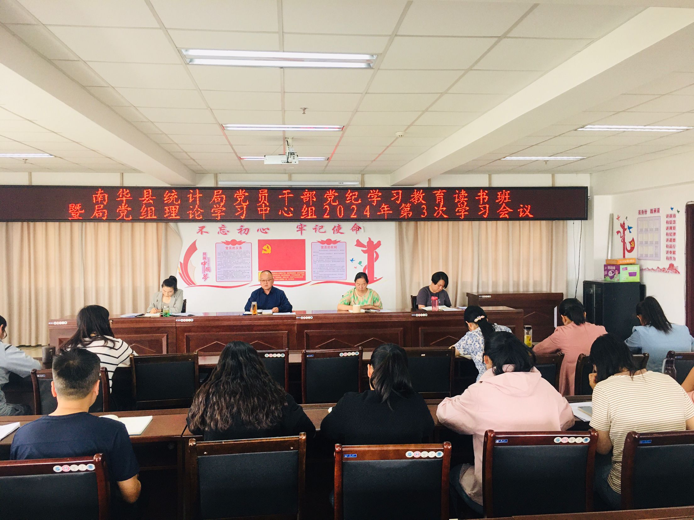 5月8日下午,南华县统计局召开党纪学习教育读书班暨党组理论学习中心组2024年第三次学习会议,围绕深入学习贯彻习近平总书记关于党的自我革命的重要思想,学习《中国共产党纪律处分条例》,进行深入学习研讨。会议由局党组书记、局长戴必新主持。