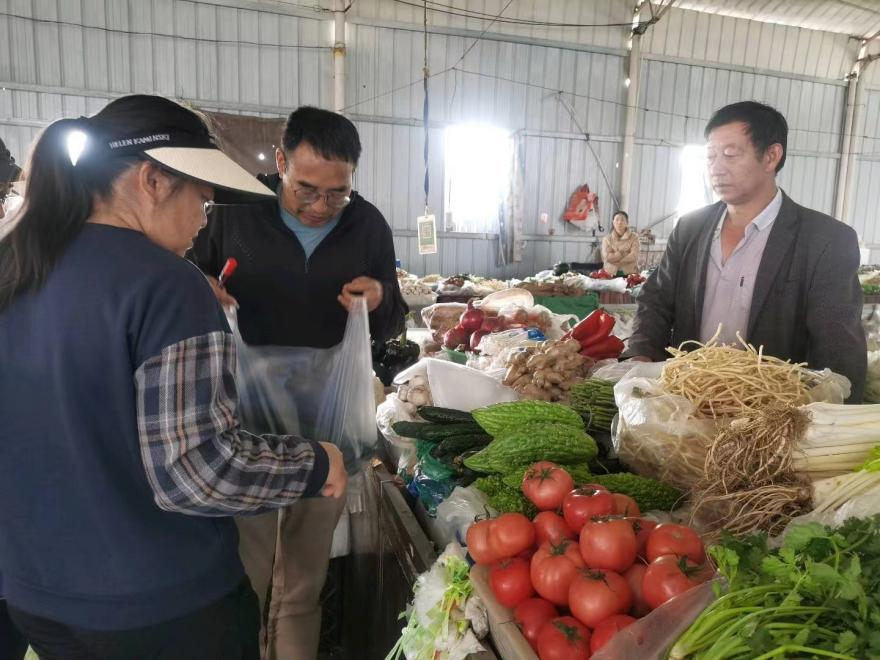 在沙桥镇农贸市场,工作人员对农户售卖的蔬菜进行现场采样,并填写抽查抽样单和抽样系统,为后期溯源追踪做好准备,同时向菜农宣传农产品安全知识,提高种植户农产品安全意识。此次共抽取17个样品进行农药残留定量分析。