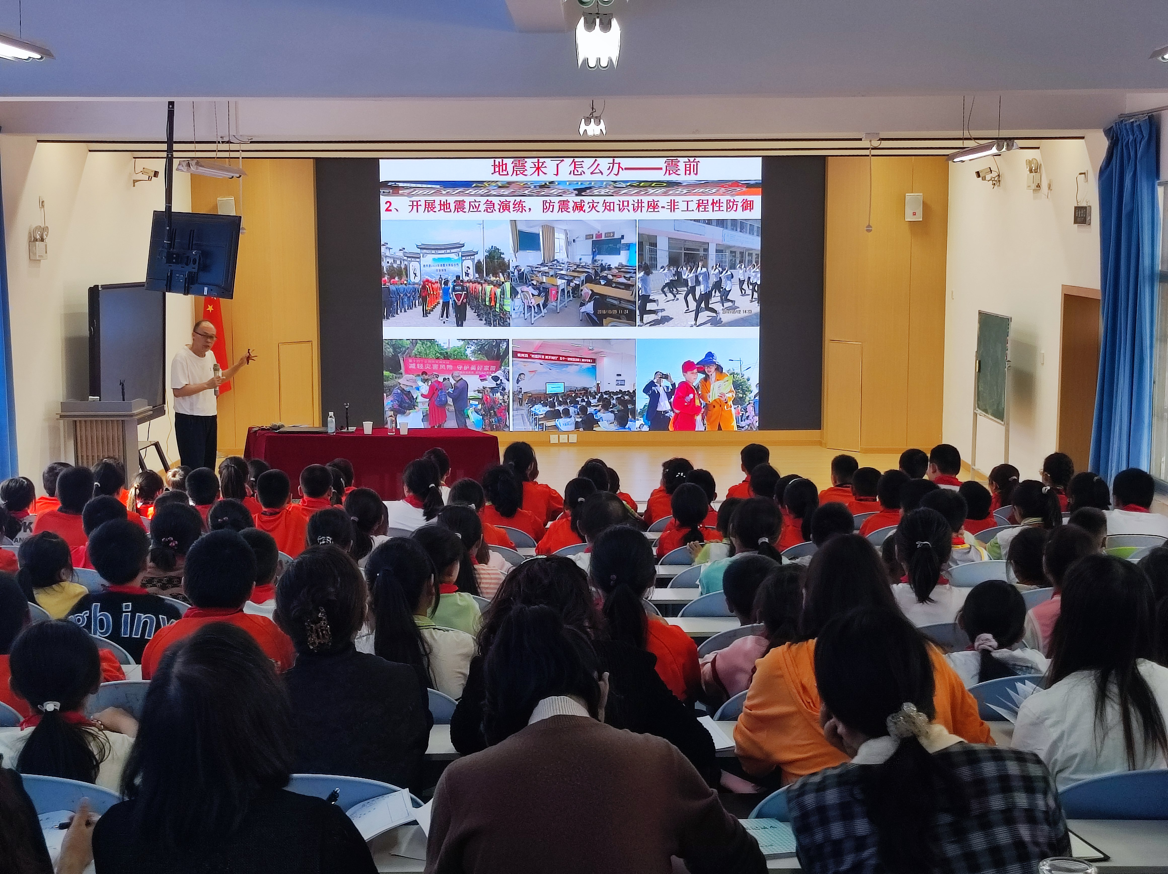 讲座现场,纪开林工程师围绕地震基本知识、云南地震灾害特点、地震前兆观测内容、地震谣言的特点和鉴别方法、防震避险常识等方面展开,为孩子们上了一堂生动有趣的地震安全科学教育课,教导孩子们发生地震时不要惊慌,把握黄金时间,尽快到安全的地方躲避,即使被困住了也不要慌张,要保存体力等待救援,时刻关注周围环境的变化,做好紧急应对准备。
