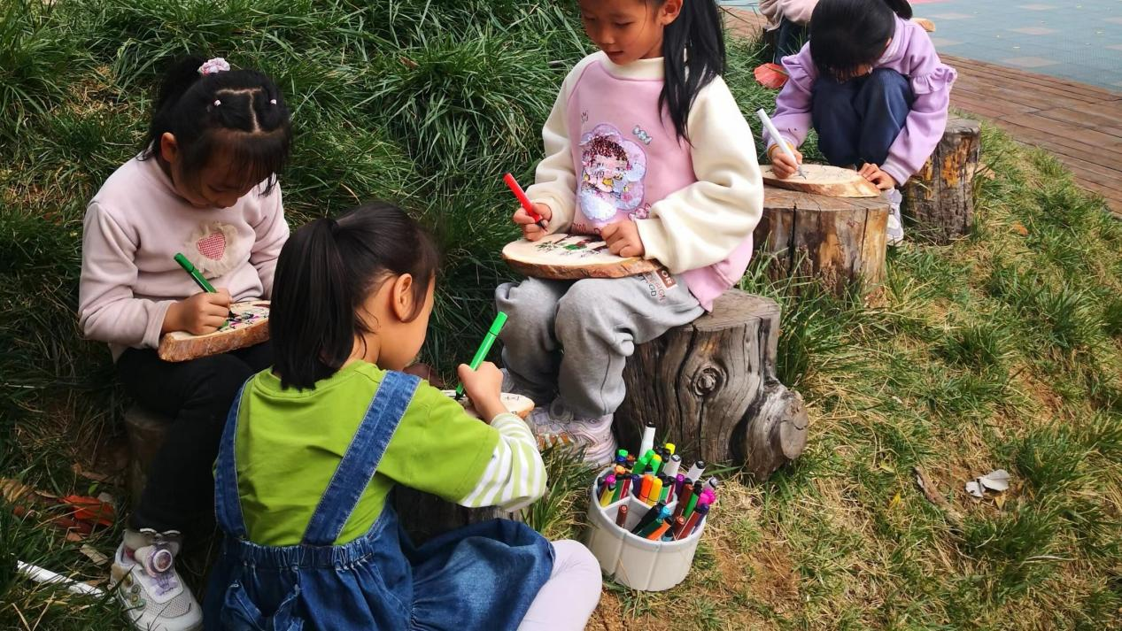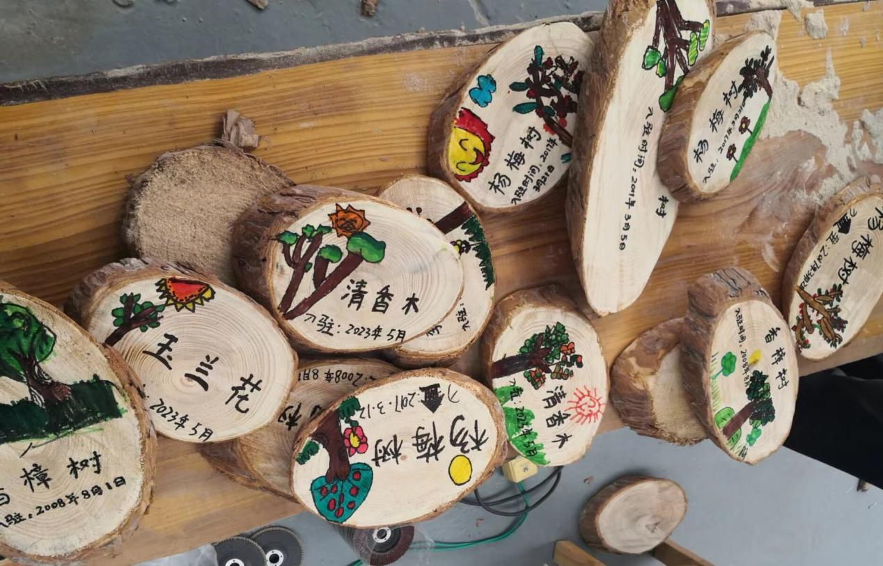 活动之初,老师们精心准备木质圆片、颜料、画笔、挂牌麻绳等材料,将小朋友们进行分组。在老师的陪伴和指导下,小朋友们热情高涨,迫不及待地想要为每棵树绘制一张独特的身份证。小朋友们认真观察、仔细辨别自己选择树木的形状、特点,然后认真参与绘画创作,用他们稚嫩的画笔勾勒出心中最美的树木形象。有的画出了郁郁葱葱的大树,有的画出了硕果累累的果树......每个小朋友的画都充满了童趣童真。
