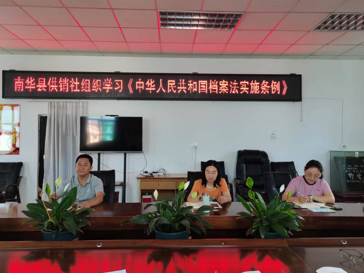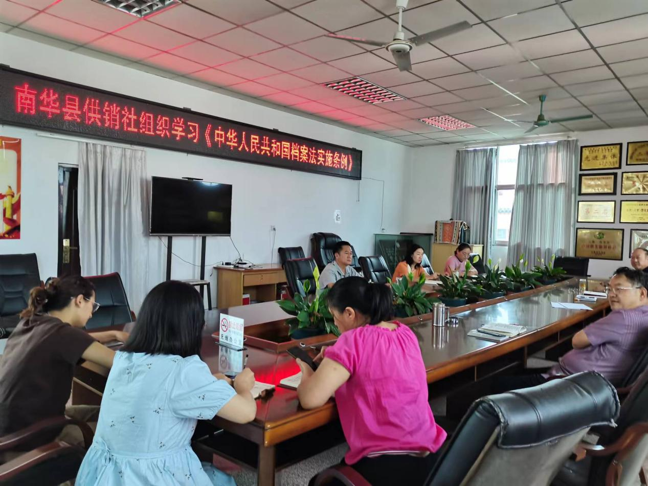 为深入贯彻落实党的二十大精神和习近平总书记关于做好新时代档案工作的重要指示批示精神,进一步提高全体干部职工的档案法治意识,推进档案事业高质量发展。6月11日上午,南华县供销社组织机关全体干部职工对新修订的《中华人民共和国档案法实施条例》进行了集中学习。