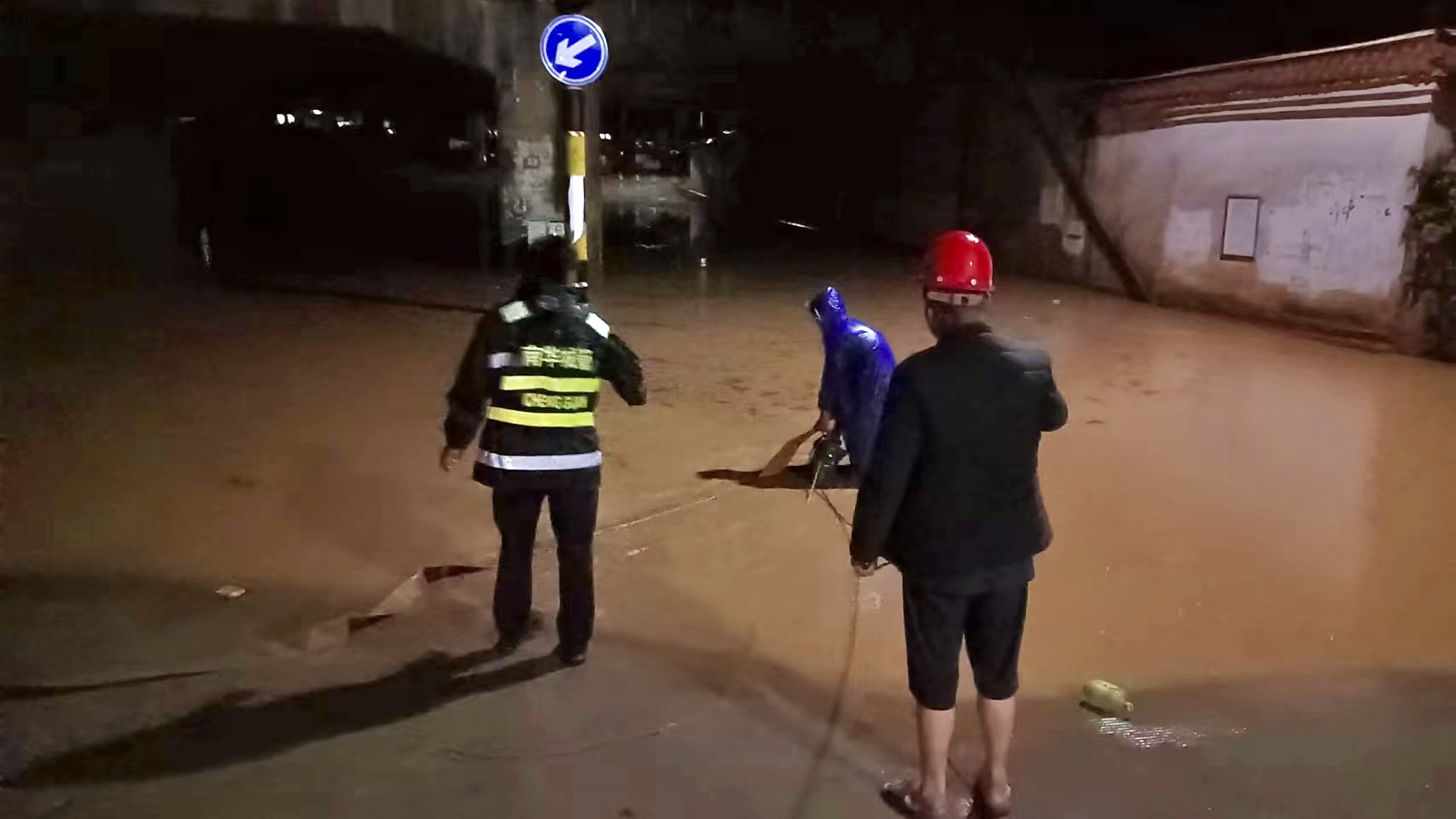 高铁站桥涵是过往高铁站必经之路,晚上9时,由于降雨量过大,桥涵路面被积水淹没,城管队员迅速出动,及时抽调排水设备排涝,奋战至凌晨2时,险情被排除,交通得到恢复,确保了过往人民群众生命财产安全。