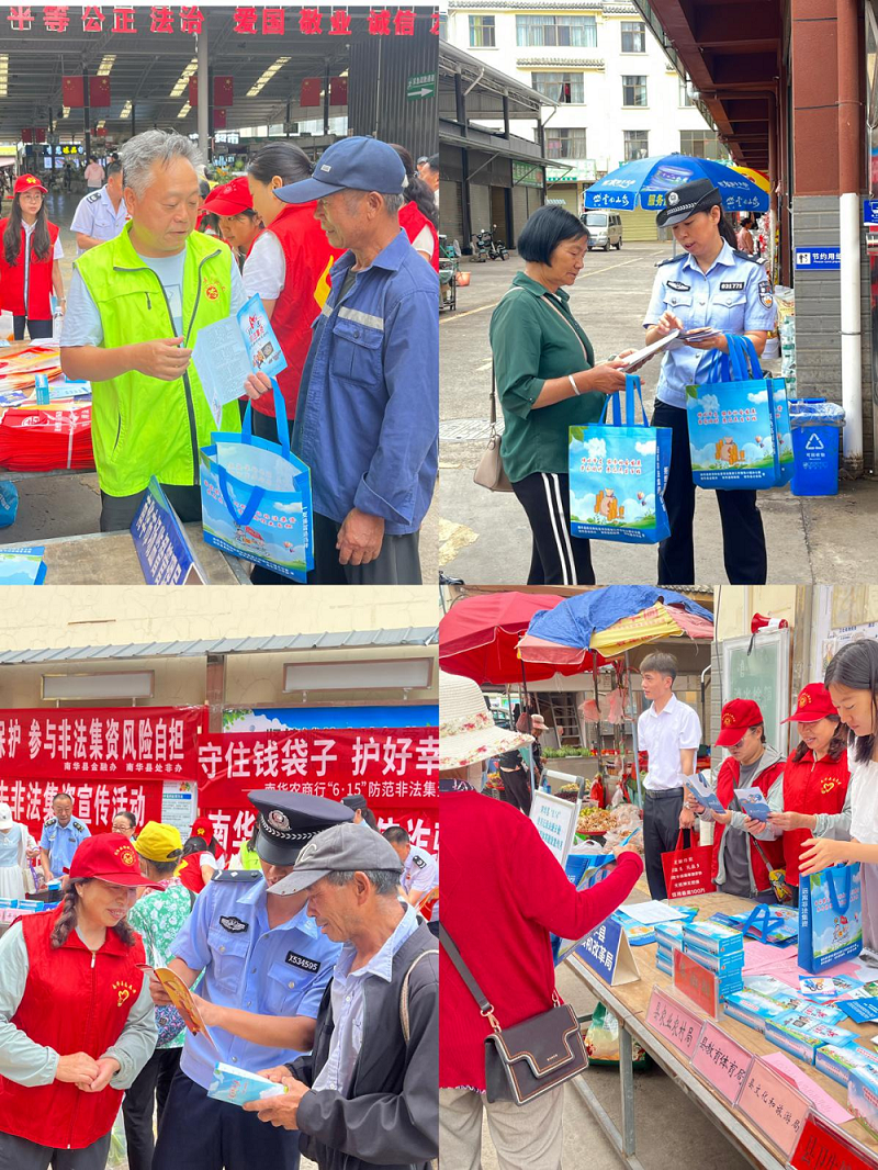 为进一步提升广大人民群众对非法集资的防范意识和识别能力,增强群众自我保护意识,引导群众自觉远离和抵制经济犯罪,全面宣传贯彻《防范和处置非法集资条例》《云南省防范和处置非法集资工作实施细则》,不断扩大防范非法集资知识覆盖面,努力维护人民群众财产安全和合法权益,最大限度减少非法集资案件的发生,维护社会安定和谐,营造良好的金融环境。6月15日上午,在县处非办的牵头组织下,25家县级成员单位、5家银行机构,近50人组成的集中宣传队伍,身着制式服装或志愿者服,到县城人员密集的北城农贸市场门口开展防范非法集资主题宣传日活动。