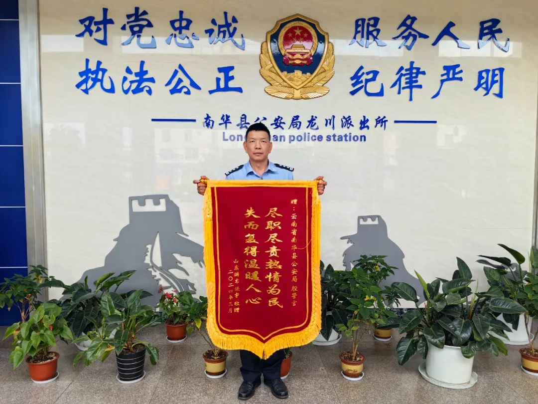近日,南华县公安局龙川派出所收到一面“尽职尽责热情为民,失而复得温暖人心”的锦旗。