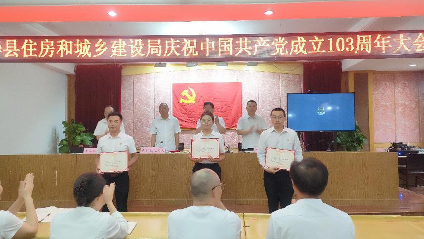 为庆祝中国共产党成立103周年,弘扬伟大建党精神,进一步巩固和深化学习贯彻习近平新时代中国特色社会主义思想主题教育成果,切实推动党纪学习教育走深走实,增强广大党员干部的光荣感和使命感,7月1日,县住房城乡建设局开展庆祝中国共产党成立103周年系列活动。