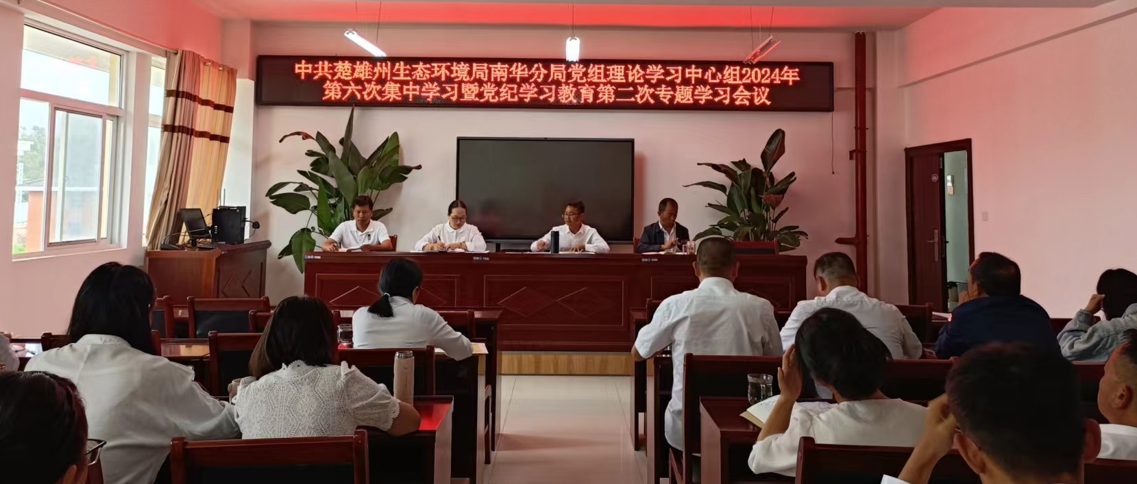 在庆祝建党103周年之际,7月1日,州生态环境局南华分局围绕“庆祝党的生日,传承党的光辉,接续党的事业”主题,召开党组理论学习中心组第六次会议暨党纪学习教育第二次专题学习会议,通过“一场专题学习、一堂书记党课、一次交流研讨”,庆祝党的生日,加强党纪党规学习,不断提升生态环境保护队伍政治修养、思想素质和业务水平。