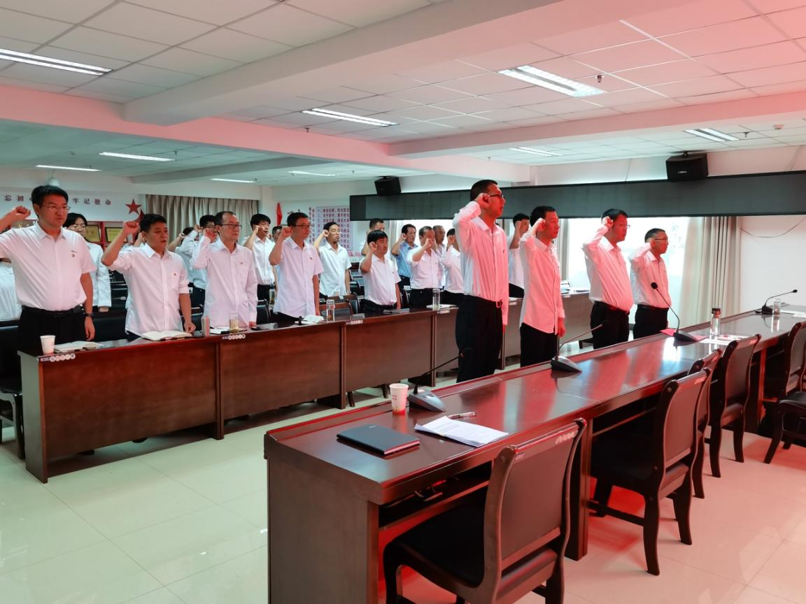 会议在庄严的国歌声中拉开序幕,全体参会党员奏唱国歌,在高昂的歌声中表达了对祖国的热爱,对党的忠诚。会上,全体党员重温入党誓词,面对鲜红的党旗列队肃立,高举右拳,再次庄严宣誓,誓言铿锵,初心如磐,进一步坚定了对党的忠诚和为共产主义事业奋斗终身的强烈决心。