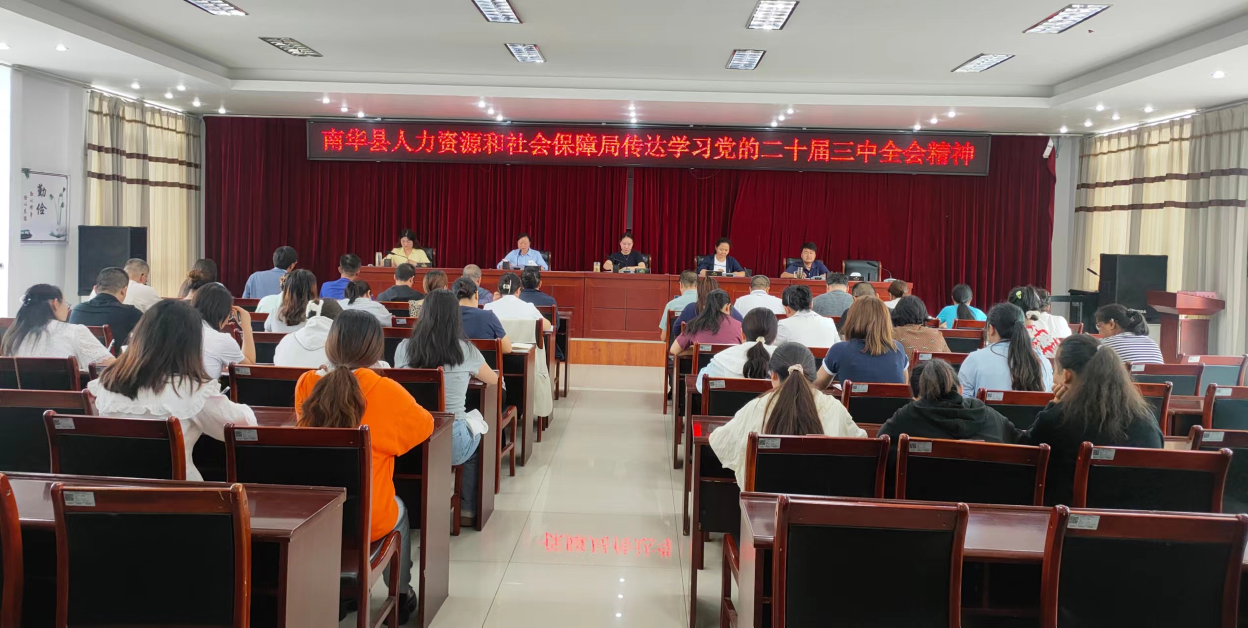 7月22日上午,南华县人力资源和社会保障局召开干部职工会议,专题传达学习党的二十届三中全会精神,并结合实际作近期工作安排,全体干部职工参加学习。