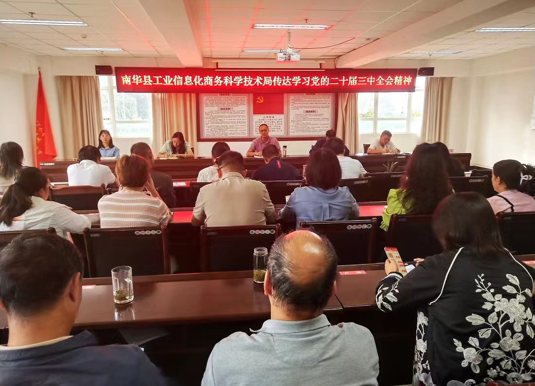 7月22日,南华县工业信息化商务科学技术局召开全体干部职工会议,专题传达学习党的二十届三中全会精神。