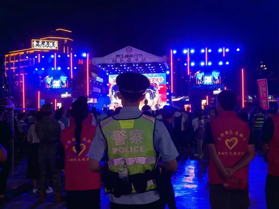 “请大家保管好随身物品,不要拥挤,依次有序进场”。随着一位新警站在会场入口用铿锵有力的声音维持会场秩序,并不断提醒前来游玩群众一定要保管好个人物品,南华菌子节音乐会也正式拉开帷幕。