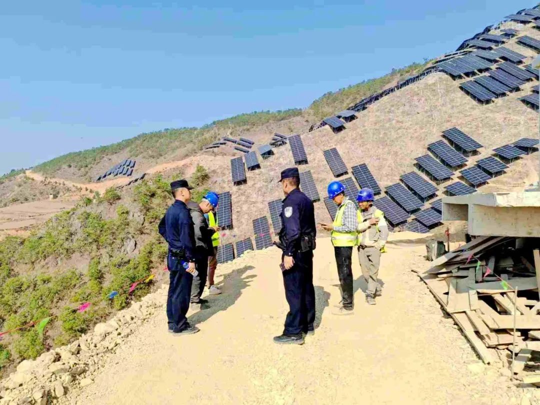 云南区域单体最大光伏投建营项目——楚雄州南华县罗武庄光伏项目目前已实现全容量并网发电。该项目南北绵延18.6公里,东西跨越4.5公里,施工期间工人数量高达三千余人,南华县公安局罗武庄派出所立足主要职能,认清项目需求,向前一步“治未病”,积极探索“光伏警务”新模式,致力于破解项目难题,跑出助力光伏项目发展“加速度”。