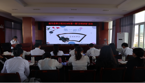 为庆祝中华人民共和国成立75周年,广泛培育和践行社会主义核心价值观,进一步提升干部职工思想道德和文明素质,9月29日,南华县审计局开展以“家庭美德”为主题的文明讲堂活动。