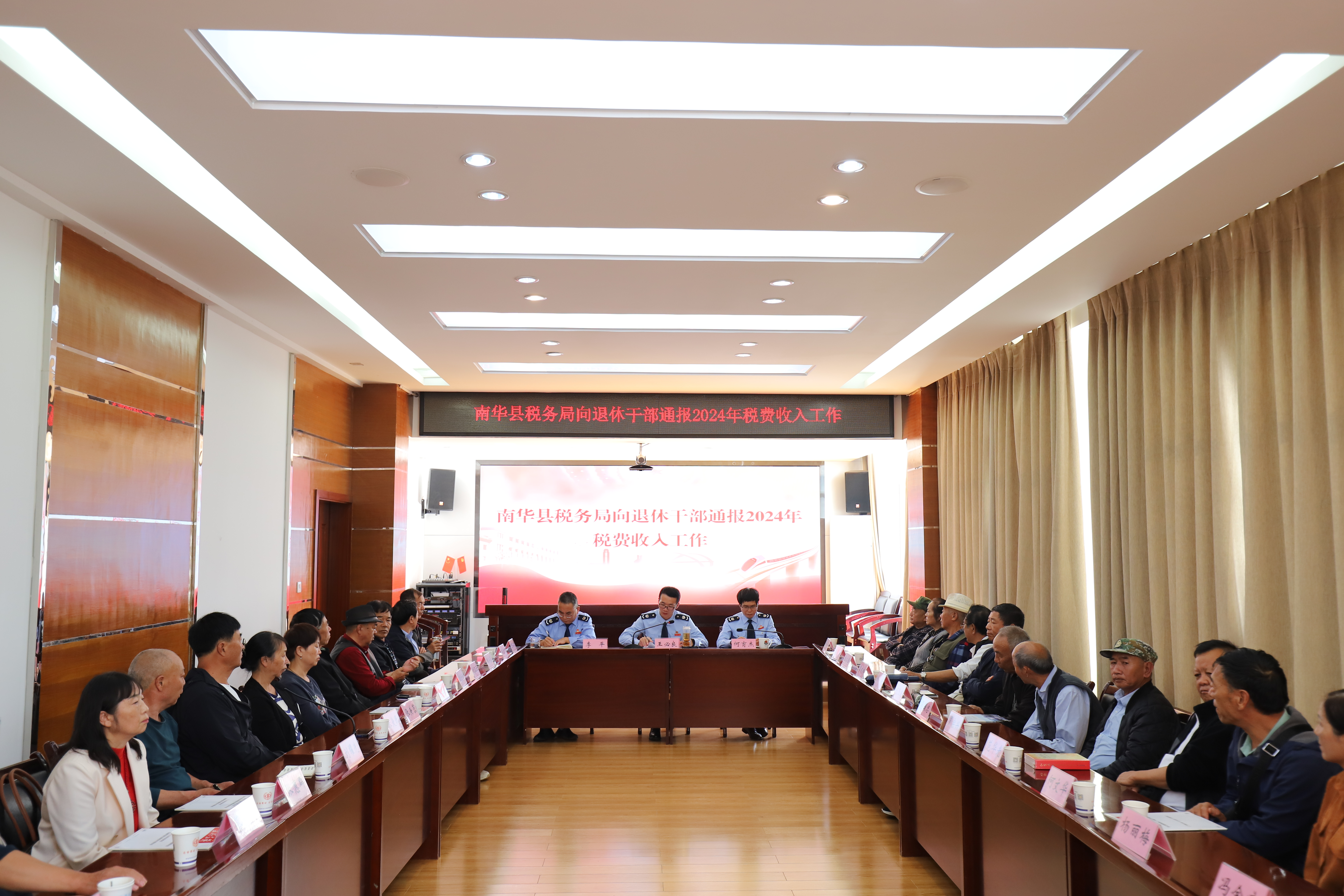 会上,南华县税务局主要负责人向老同志们致以诚挚的节日问候和美好祝福,并通报了南华县税务局2024年税费相关工作情况,对老同志为税收事业发展作出的贡献表示衷心感谢。随后,老同志们畅所欲言,分享自己的退休生活,对近年来深化税收征管改革取得的一系列成绩感到由衷的自豪。大家一致表示,要坚决做到退休不褪色,不忘初心,一如既往关心支持税收事业的发展,为推进税收工作高质量发展建言献策。