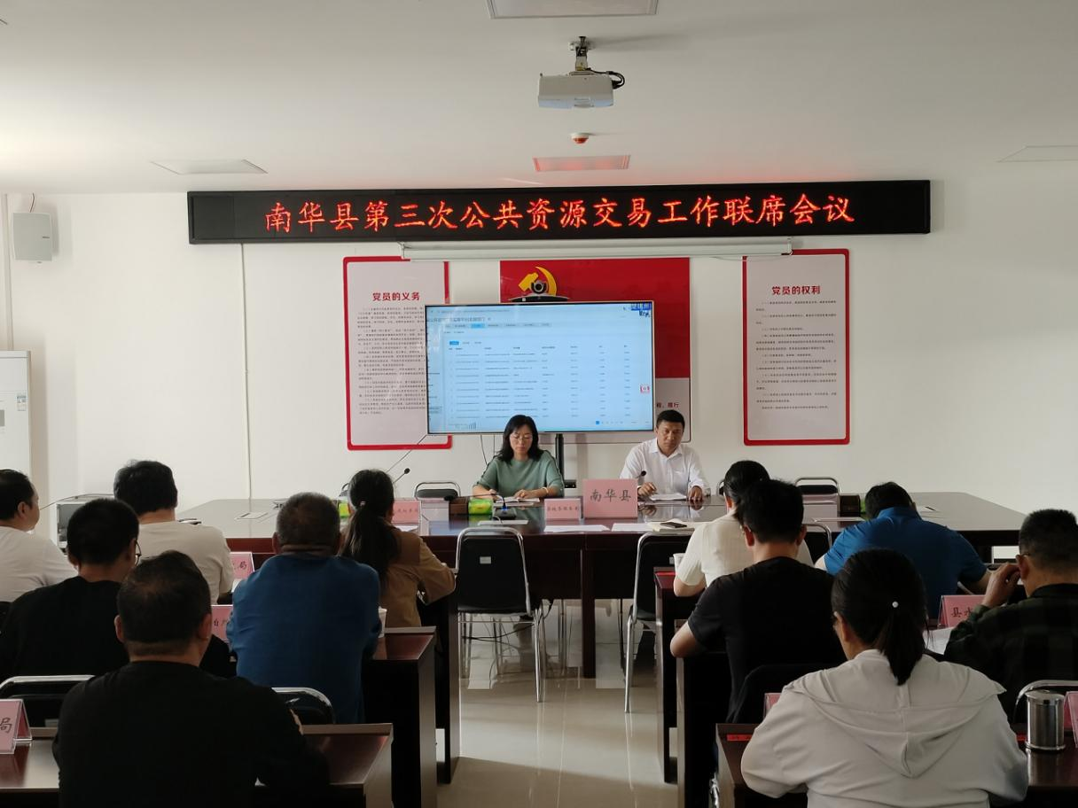 10月11日下午,南华县召开第三次公共资源交易工作联席会议,县公共资源交易中心全体人员、县级各行政监管部门分管领导和业务人员参加会议,会议重点研究部署2024年公共资源交易工作要点和公共资源交易平台考核相关工作。