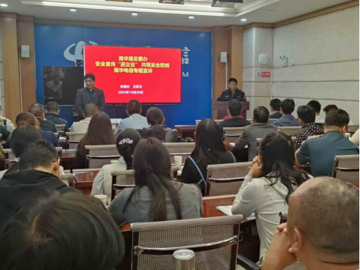 2024年10月26日,县应急管理局主动与企业对接,利用休息日到中国电信股份有限公司南华分公司开展“送安全培训”活动,上门为企业开展安全培训服务,并根据企业特点及实际需求量身制作安全培训课程。