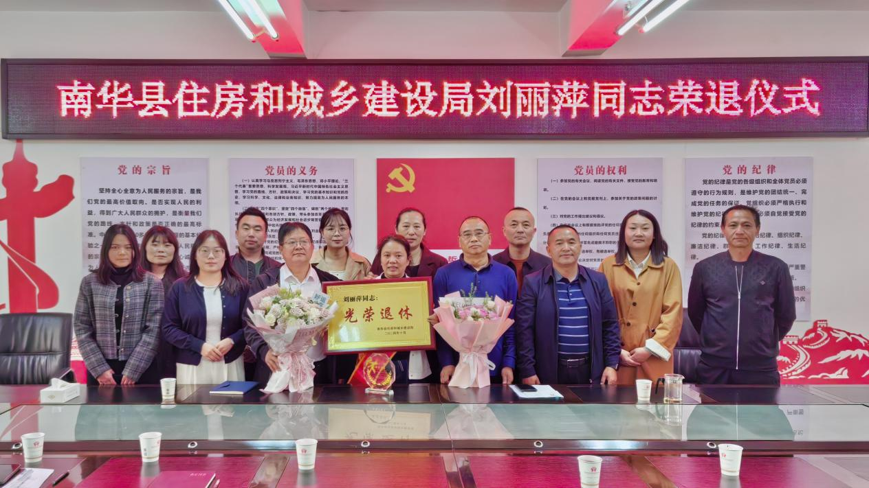 为深入贯彻落实习近平总书记关于老干部工作的重要论述和对老龄工作的重要指示精神,充分体现对退休干部的崇高敬意和关心厚爱,增强退休干部的荣誉感、归属感、幸福感,激励广大干部传承优良作风,10月30日上午,县住房城乡建设局为到龄退休的刘丽萍同志举行荣退仪式,县住房城乡建设局部分班子成员和干部职工参加荣退仪式。