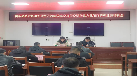 为推动全县安全生产风险隐患闭环管理工作,健全安全风险分级管控和隐患排查治理双重预防机制,有效防范遏制各类事故发生。11月27日,南华县安全生产委员会办公室组织召开县对乡镇安全生产风险隐患全覆盖全链条常态化闭环管理业务培训会,全县10乡镇分管安全生产的副乡镇长参加会议。