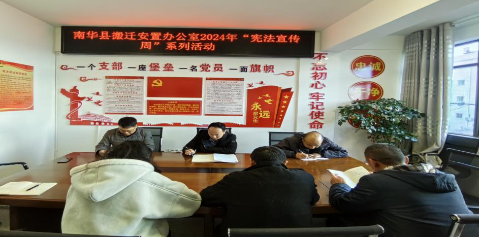 为深入学习宣传贯彻习近平法治思想、党的二十届三中全会精神,弘扬宪法精神,维护宪法权威,推动宪法全面实施,12月4日,南华县搬迁安置办公室围绕“大力弘扬宪法精神,推动进一步全面深化改革”为主题,多措并举开展国家宪法宣传活动。